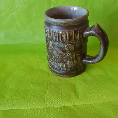 Keramik, Stort krus, Bygdø keramik, Et dejligt stort krus eller evt. vase fra Bygdø keramik. Her er det Bornholm som er dekoreret på kruset. Rigtig lækkert, og en god størrelse til vase. Men også en rigtig god størrelse til et krus koldt øl. Det måler 12 cm.i højden og 10 cm.i diameter. Og kruset er i perfekt stand.