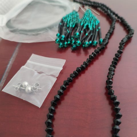 Smykkesæt, bijouteri, Arium, Sort lakeret metal kæde og enkelte glas