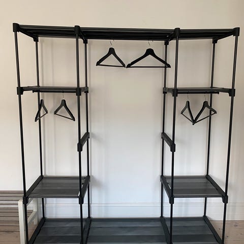 I 4fags skabet er der små ridser på 2 skabsdøre, hvorfor der medfølger 2 ekstra skabsdøre, der kan skiftes, uden ridser naturligvis. Der er en hylde øverst i alle skabe.
