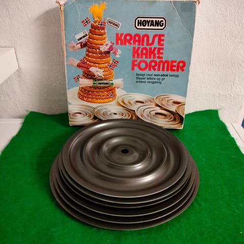 Kransekageforme Kløverblad / Høyang til 18 ringe med non-stick belægning, brugt 1 gang, sælges.