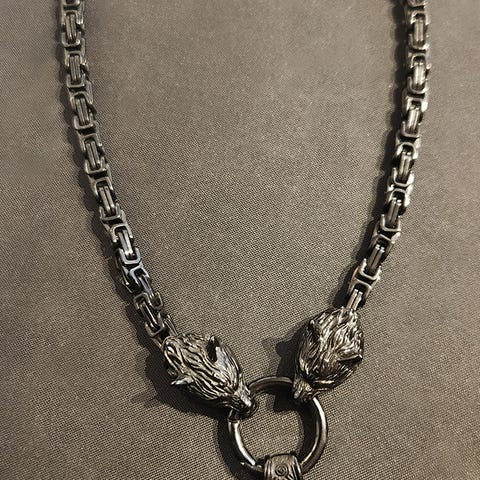 Halskæde, kirurgisk stål, Thors hammer m kæde, Fed Thors hammer i et Oldtids udførelse med en fin kæde med ulvehoveder