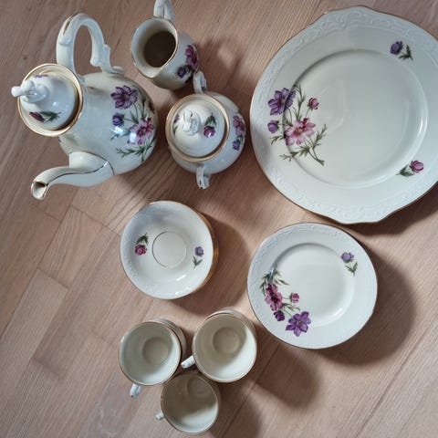 Porcelæn, Kaffestel, Ved ikke, Der er til 12 Pers. Med flødekande. Uden skår og skader bud modtages sendes ikke.