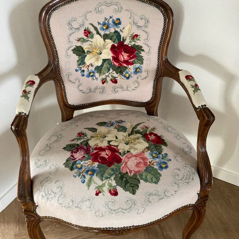 Broderet betræk til 2 rokokostole, Uld, 45 år gl.