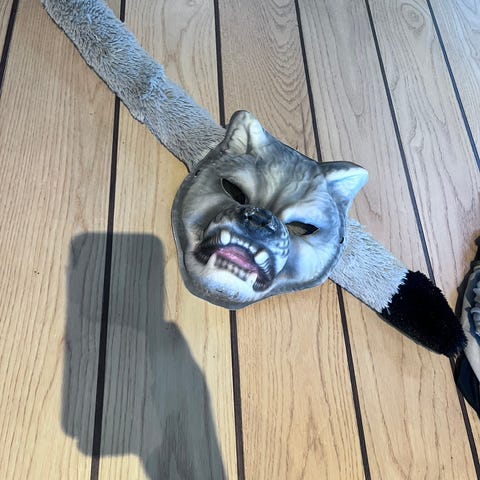 Den er med fleece indvendigt - kan også bruges som alm hue - med håndvarmere (“poterne”).