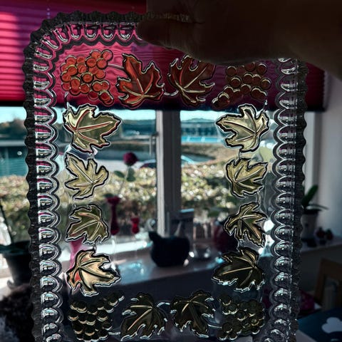 Glas, Tysk fiskefad og tallerken 1970, Walther Glas, Tyskland, Stort serveringsfad og tallerken fra Walther Glas i Tyskland. Det er fremstillet i 1970’erne og dekoreret med fisk, muslingeskal og søstjerner.