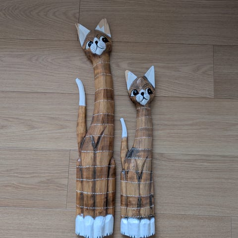 Stor kat træ figur, Ukendt, 1970