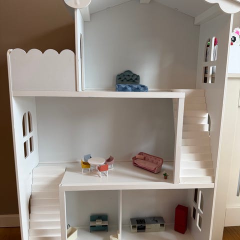 Dukkehuset er mest brugt til opbevaring, så der er intet slid på møblerne.