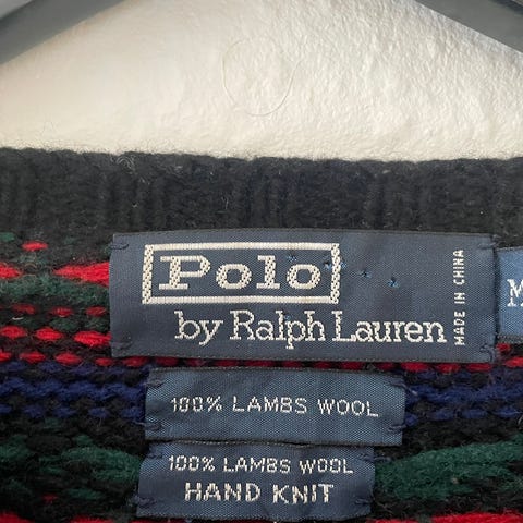 Sweater, Garant, str. XL, Mørke blå, gul, rød og grøn, 30% Uld 70% acryl, God men brugt, Vintage Garant Uld Polo Sweater