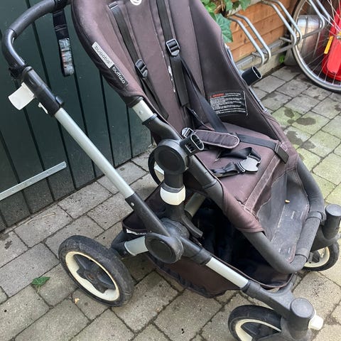Klapvogn, Bugaboo Buffalo, Fin kombiklapvogn i mørk brun farve. Incl. kaleche og bøjle. Kører super godt. Alder ca 6-7 år, brugt til 2 børn. Bare stået opmagasineret de sidste 3 år. Liftindsats og sovepose medfølger. Soveposen har 2 små rifter i yderste stof der lige skal sys sammen. Sælges samlet.