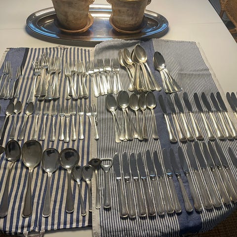 Sølvtøj, stegegaffel , sovseske, kartoffelske, 3tårnet sølv, stegegaffel, sovseske, øseske.