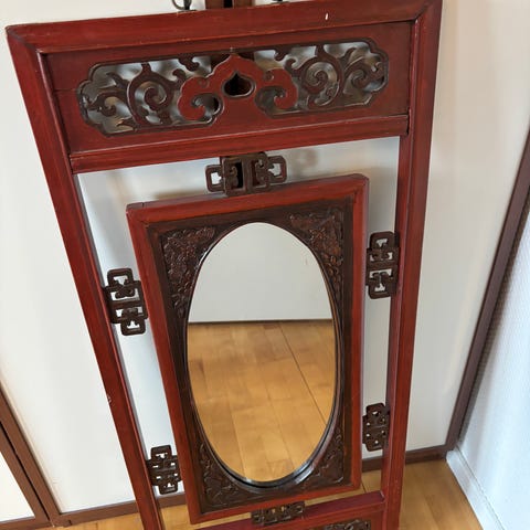 Vægspejl, træramme i ædeltræ, ukendt træsort - rammen er 10 cm bred - smukt dekoreret (se billeder