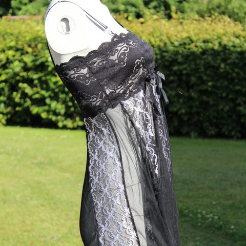 Undertrøje, god kvalitet, ny og ubrugt, str. small, hvid, 100% bomuld, med blonde og bred strop.