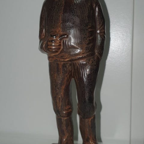 Porcelæn, Figur, Porcelænsfigur - mand sidder på bænk med sin hund og har sin pibe i hånden