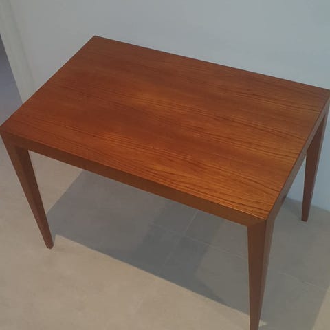 Sofabord, teaktræ, b: 58,5 l: 134 - nedsat pris, da bordpladen trænger til et par kærlige hænder