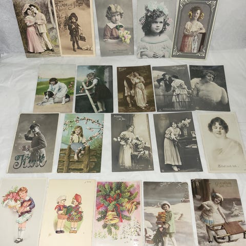 Postkort i fast papirramme, Seks tidstypiske ophæng med postkort fra 60´erne. Glas. Brugsspor. Størrelse 15,5 cm x 12 cm. Vejer 650 gram.