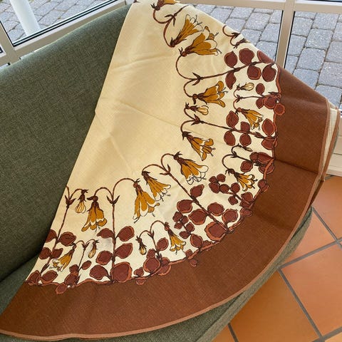 Rund retro påskedug, Fin lille grøn dug med de sødeste kyllinger. Ca. 56 cm. i diamanter. Sender gerne men køber betaler selv for en eventuel forsendelse.