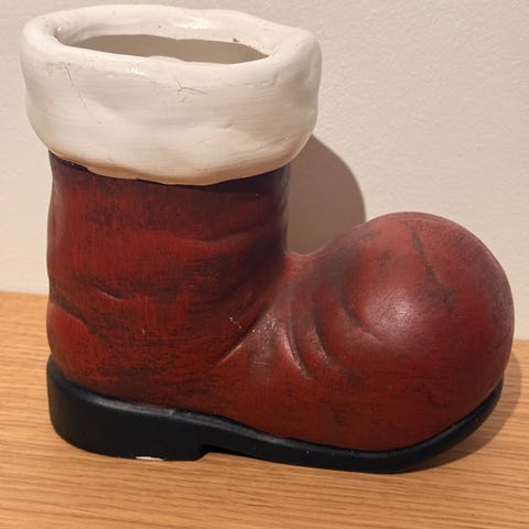 ¤ julesok - gavesok - høj 40 x 17 cm - fod bred 24 cm - julemand med nissehue - pris 25 kroner