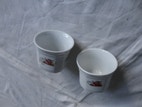¤ Skål - porcelæn - julemand på kælk - høj 6,5 cm - diameter top 7 cm - een skål (en skål solgt) - pris 10 kroner