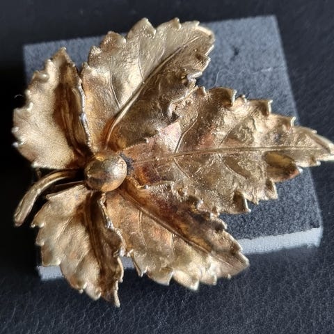 Broche, sølv, Tilia Danmark, Smuk forgyldt sølv broche formet som blad.