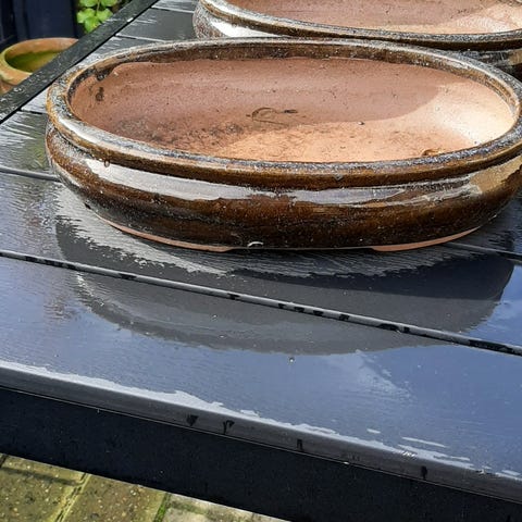Sort bonsai krukke uden hul. L / 20.5 cm. B / 20 cm. Høj / 7 cm. : Pris: 250 pr. stk. SOLGT.