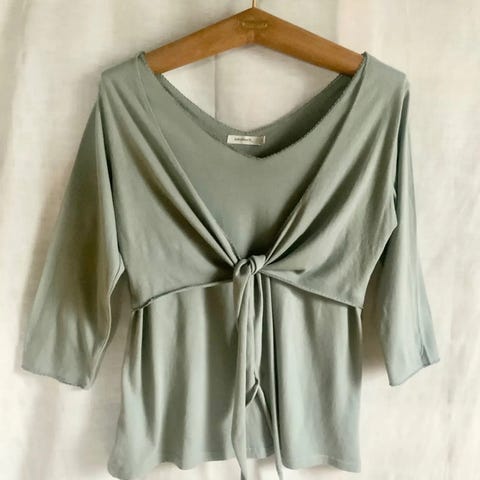 Bluse, SANDWICH, str. 40, Sand / beige, Bomuld, Ubrugt, Bluse / cardigan med asymetrisk lukning.