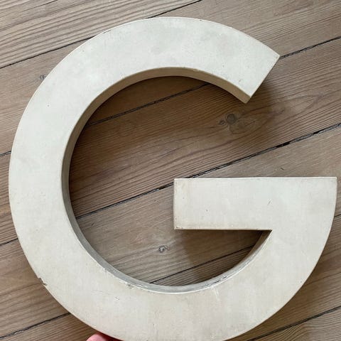 Bogstaver facadebogstav, Kobber, Meget fine facade bogstaver i kobber - det hvide bogstav er i lakeret træ. G I N.