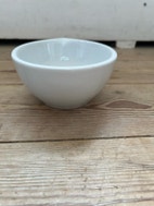 Porcelæn, Kande, Lille hvid porcelæn kande, glat og rå glasur. Den er 6 cm høj og 11,5 x 12,5 cm