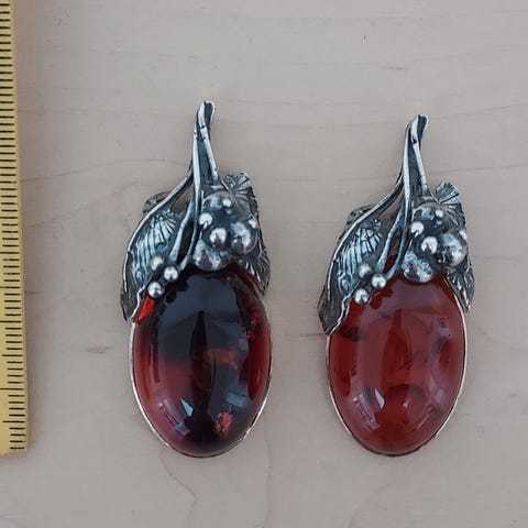 Vedhæng, rav, 925, Antik rav vedhæng med sølv 925