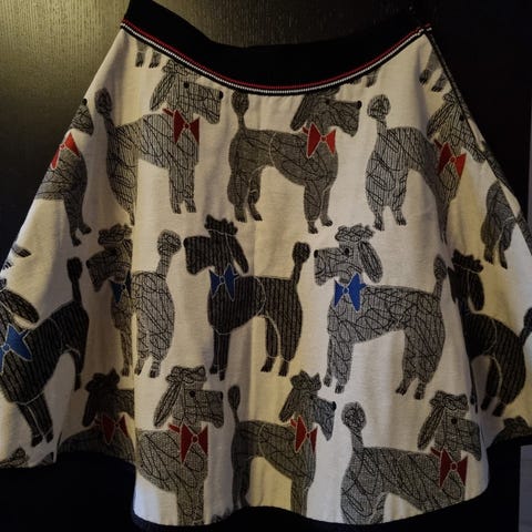 Nederdel, str. 42, Margot, Sort, rød med hvide prikker, 95 % bomuld, 5 % elasthan, Næsten som ny