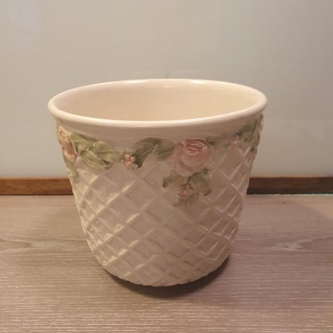 Urtepotter, Italienske, Fine gamle urtepotte skjulere med de fineste blomster. Mønstret har relief struktur, de er i god stand. Sælges samlet.