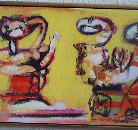 Oliemaleri, Inge Hørup, motiv: Abstrakt, b: 34 h: 82, Fremstår i meget fin stand.