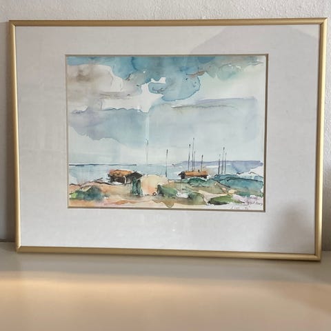 Akvarel, Margit Midtgaard, motiv: Blomster/Have, b: 70 h: 86, Indrammet mål.