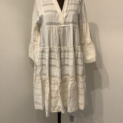 Flot kjole med super fed kryds detalje på ryggen og kortere foran end bag. BM 126 cm og længde foran 90 cm.