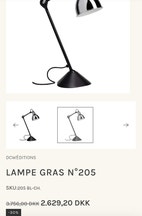 Arkitektlampe, Lampe Gras, Bordlampe købt i Paustian for 3 år siden. Fin stand bortset fra små ridser og en lille plet på foden, hvor overfladen er ridset af - se fotos. Skal afhentes.