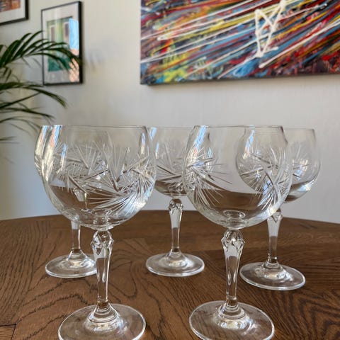 Glas, Vinglas, Bøhmisk krystal, 6. Stk Bøhmisk krystal glas i 3 farver