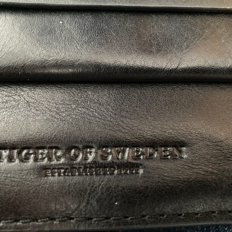 Præget i læderet Tiger of Sweden-logo.