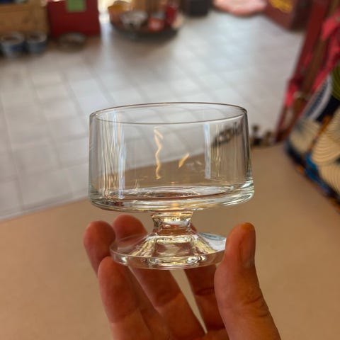 Glassene er fra den gang, hvor man havde tid til at håndsignere glas. 4 af de resterende 6 glas har graveret HG (Holmegård Glasværk) under bunden