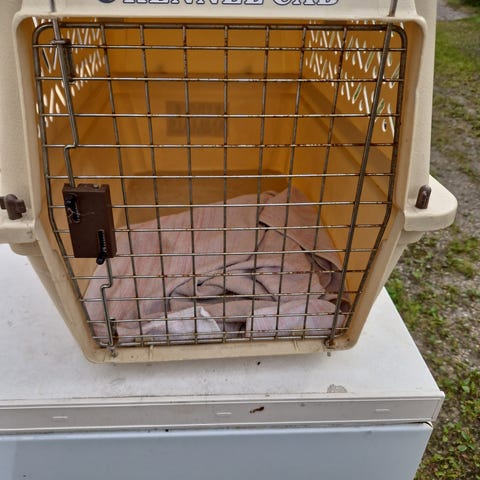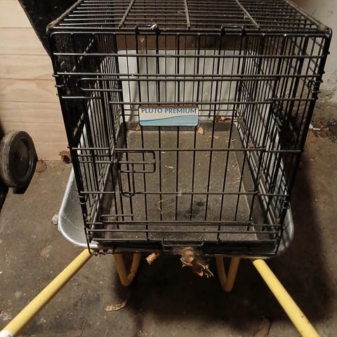 Transportbur, Fin retro transportbur i hvid metal, kan bruges til en kat/ lille hund, der er en praktisk plastik bakke i bunden, og der er en låge med sikringslås på siden. Den har et godt håndtag øverst på buret. Ingen rust.