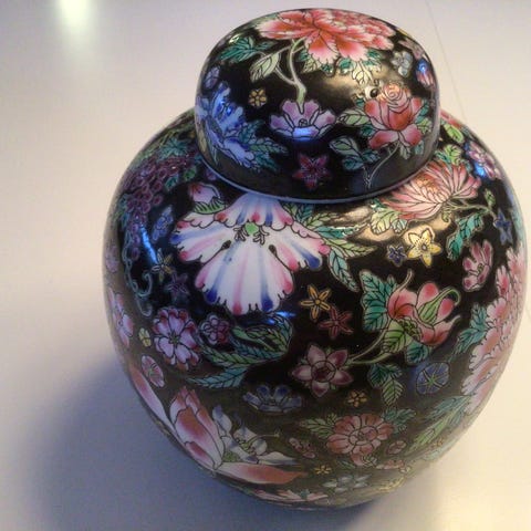 ANTIK BOJAN, VICTORIA, AUSTRIA, Fantastisk smuk gammel hvid porcelænsbojan med skønne blomsterdekorationer og guldstriber- tidløs og enkel - men gl. - købt i Østrig 1988 - fuldstændig uden skader - kun med lidt slid på guldet på "tutten", man løfter låget i. - 38 cm høj -