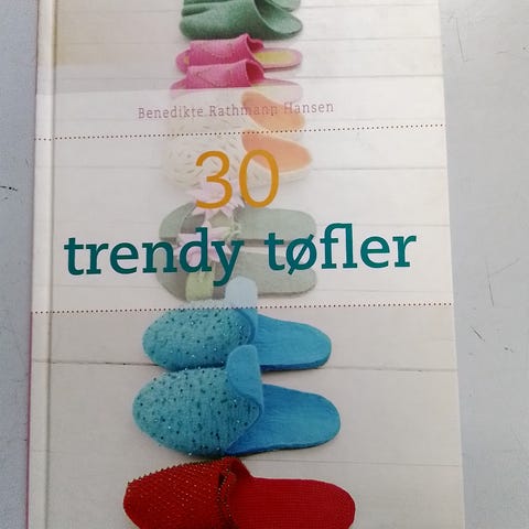 30 trendy tøfler , emne: håndarbejde, 30 trendy tøfler af Benedikte Rathmann Hansen Forlag: Olivia. år: 2006. 93 sider. Hardback -Isbn: 97887567778810. Fremstår i pæn stand