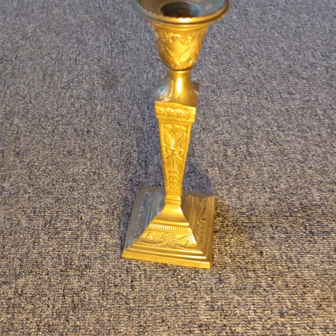 Lysestage, Flot messing lysestage højde incl lys 22 cm. Det er en meget kraftig lysestage, den vejer 950 g. ex lys.