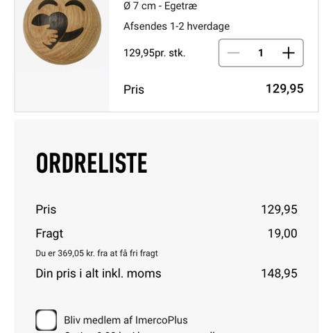 Fragt fra 29,99 kr. + Tryg betaling 15 kr.