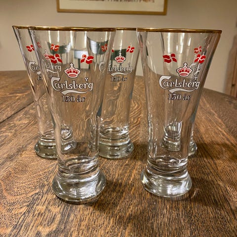 Carlsberg 150 år jubilæumsglas, 6 ubrugte glas H 17 cm samlet pris