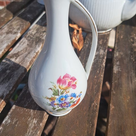 Sød lille kande med blomster, til sættekassen eller blot til pynt