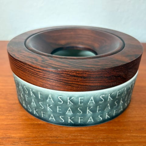 Keramik, Askefad, Jens Harald Quistgaard askefad / askebæger til piberygere. Stentøj Kronjyden i Tobaksserien. Låg i palisander. Intakt gummipakning.