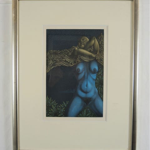 Andet, JØRGEN BOBERG, motiv: Fantasy, stil: Surrealisme, b: 44 med ramme h: 66 med ramme, Jørgen Boberg farveradering. Indrammet bag glas. Papir med pletter selve raderingen i fin stand. Indrammet i 1960-70erne engang