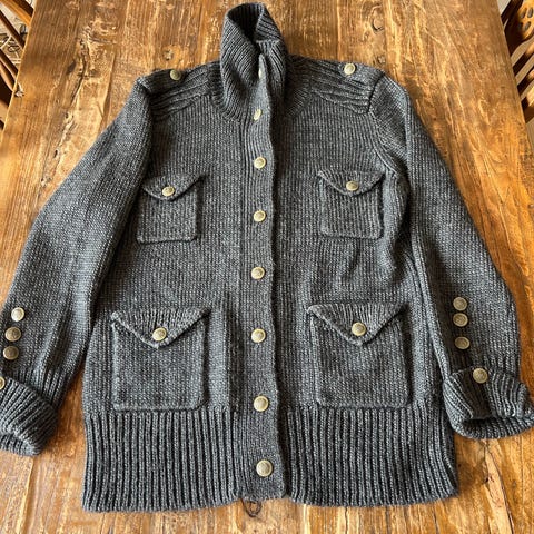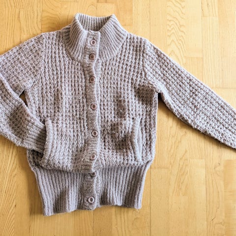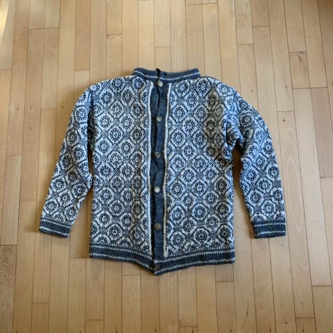 Cardigan, uldtrøje, str. 44, hvid og blå, uld, God men brugt, Dejlig strikke trøje