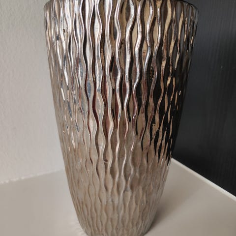 Vase, Flot dekorativ sølv vase med blomster motiv.