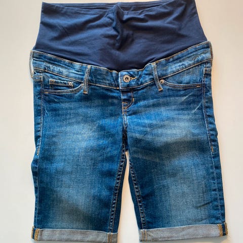 Ventebukser, H&M, str. 36, Sort, Denim, God men brugt, Ventebukser i mørk denim. Har blød elastisk kvalitet og “lomme” til maven. Meget behagelige og god pasform.