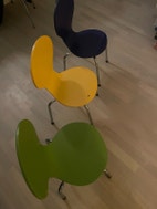 4) Tre stole i Piet Hein stil med chrom ben: Siddehøjde: 29 cm, Ryghøjde: 57 cm